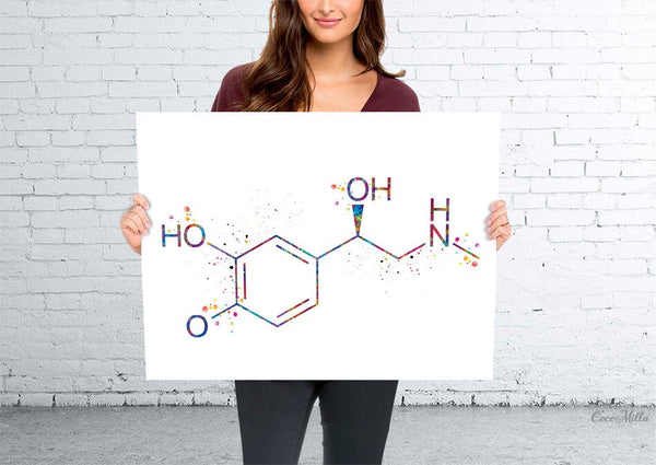 Adrenaline Molecule Watercolor Print Chemical Epinephrine Molecule Nerd Art Science Biology Medical Art Chemistry Science Art Decor-350