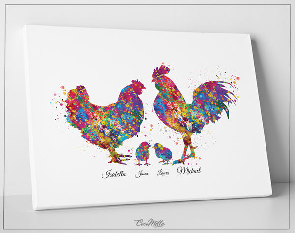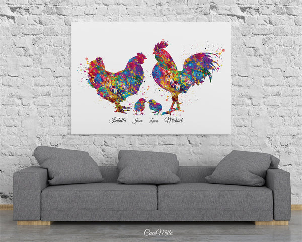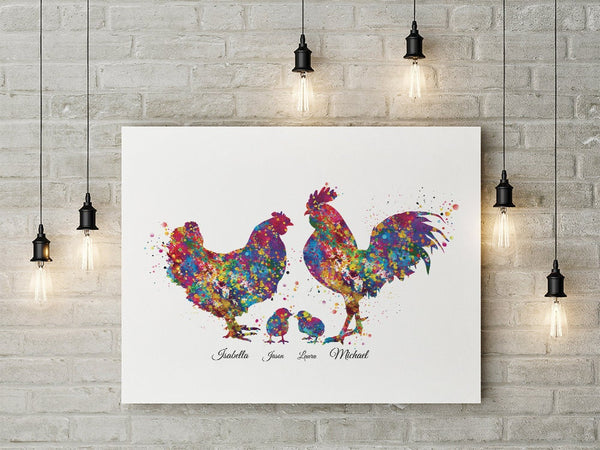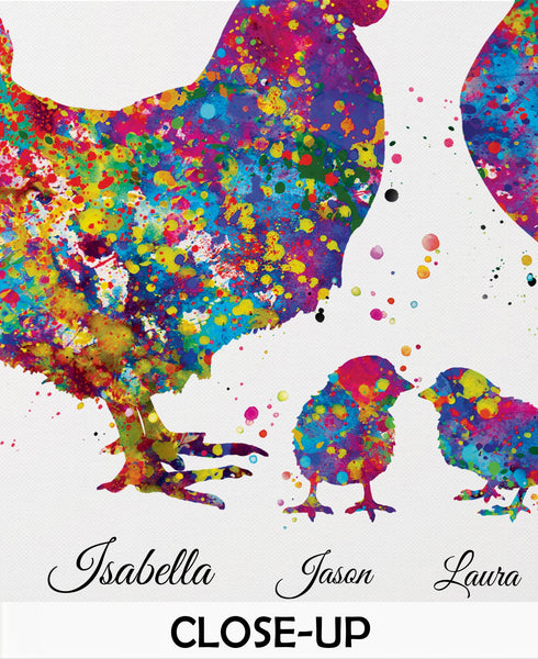 Chicken Family Personalised Watercolor Print Housewarming Gift Family Love Nursery Chicken and Chicks Hen and Baby Chicks Farm Animal-1710