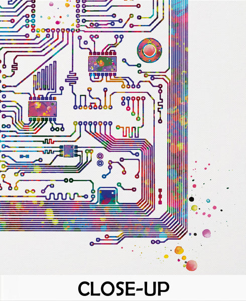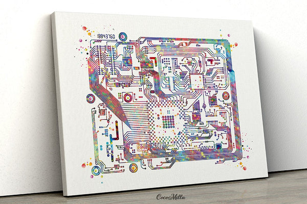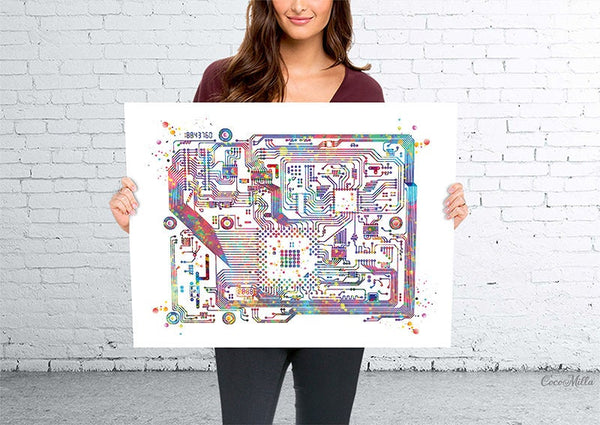 Circuit Board Watercolor Print Science Art Computer Modern Art Electronic Motherboard Engineer Technology Art Poster Tech Wall Art -1114