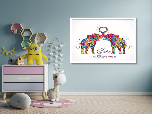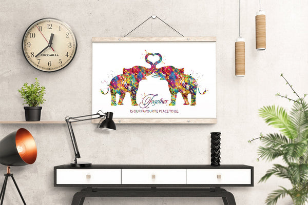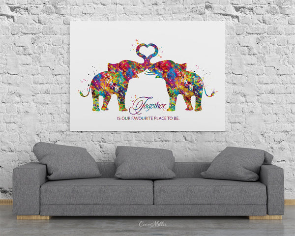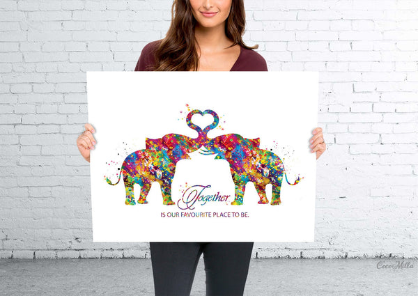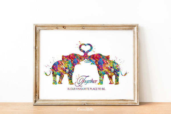 Elephant Together Quote Watercolor Print Wedding Gift Anniversary Gift Couple Print Valentines Day Housewarming Gift Family Wall Art-1447