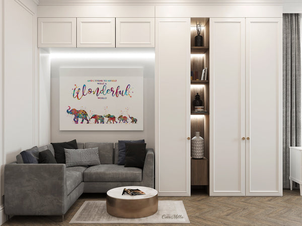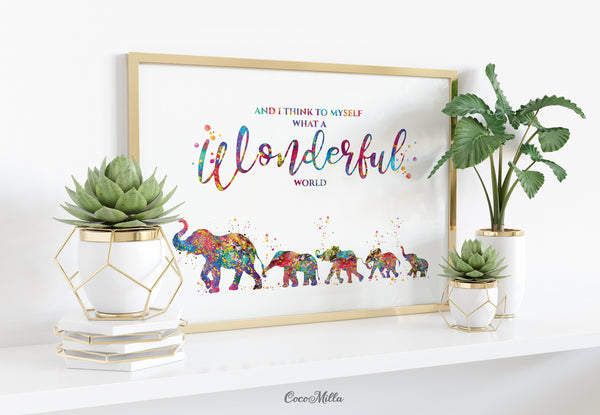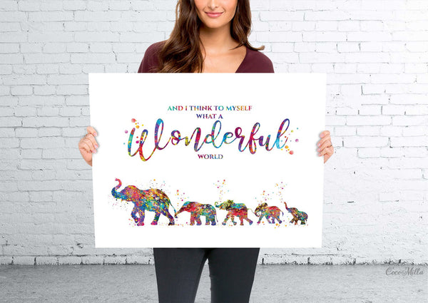 Elephants Family Watercolor Print Mom and four Baby What a Wonderful World Quote Wedding Gift Wall Art Anniversary Wall Art Baby Shower-2286