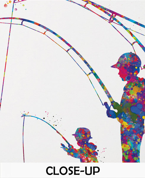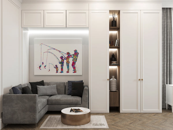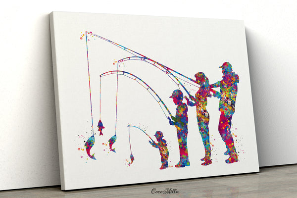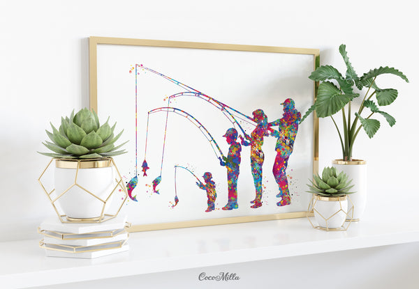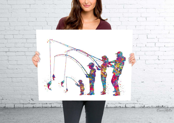 Family Fishing Watercolor Print Mom Dad Son Daughter Kids Poster Housewarming Gift Wall Art Father Mother and Son Gift Nursery Decor-2262