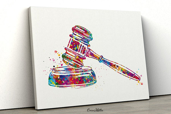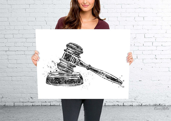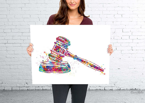 Gavel Watercolor Print Ceremonial Mallet Art Attorney Lawyer Office Wall Art Judge's Gavel Law Lawyer Justice Hammer Pass the Bar Gift-445