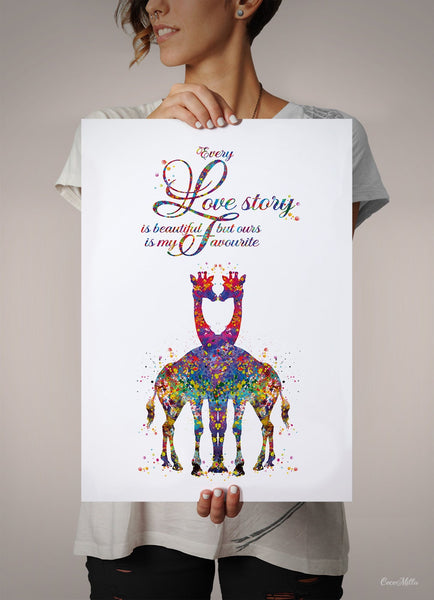 Giraffe Couple Watercolor Print Same Sex Wedding Gift Two Moms Gift Lesbian and Gay Gift LGBT Gay Pride Same Sex Love Lesbian Rainbow-1149