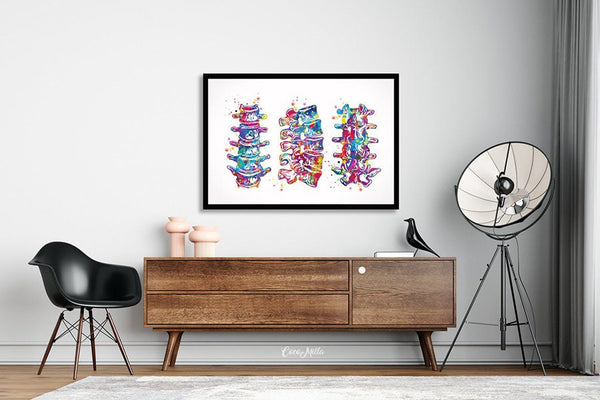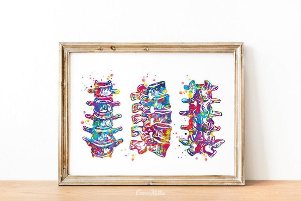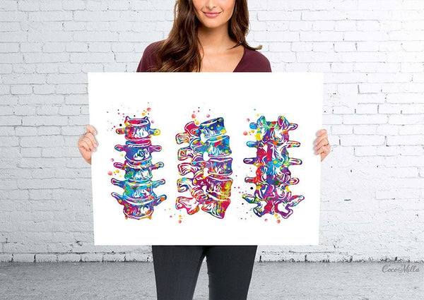 Lumbar Spine Watercolor Print Human Anatomy Art Vertebral Column Medical Art Vertebral Bones Chiropractic Skeletal System Orthopedic-1227
