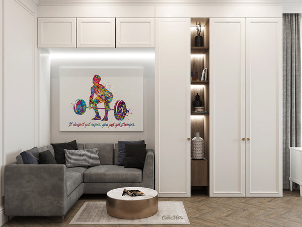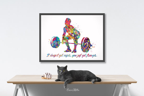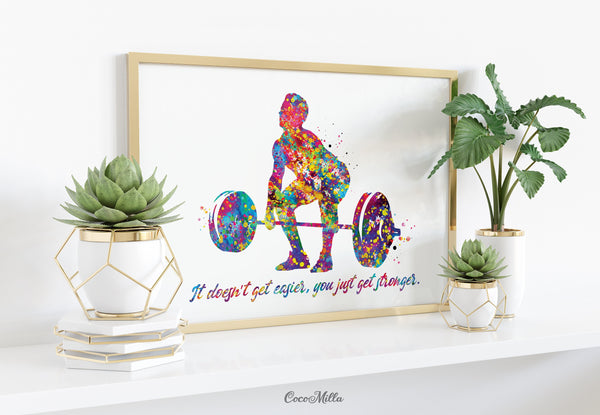 Man Weight Lifter Quote Watercolor Print Boy Weightlifter "It Doesn't Get Easier" Gym Fitness Power Lifter Strong Dad Sport Wall Art-2206