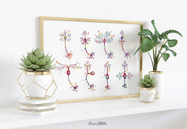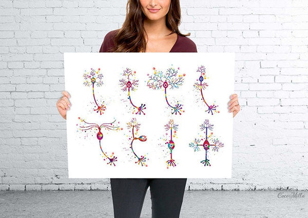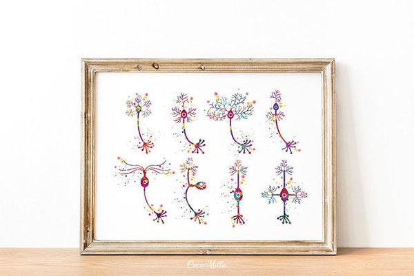 Neurons Art Watercolor Print Motor Pyramidal Purkinje Neuron Cell Neurology Medical Art Brain Anatomy Neuroscience Neurologist Clinic-183