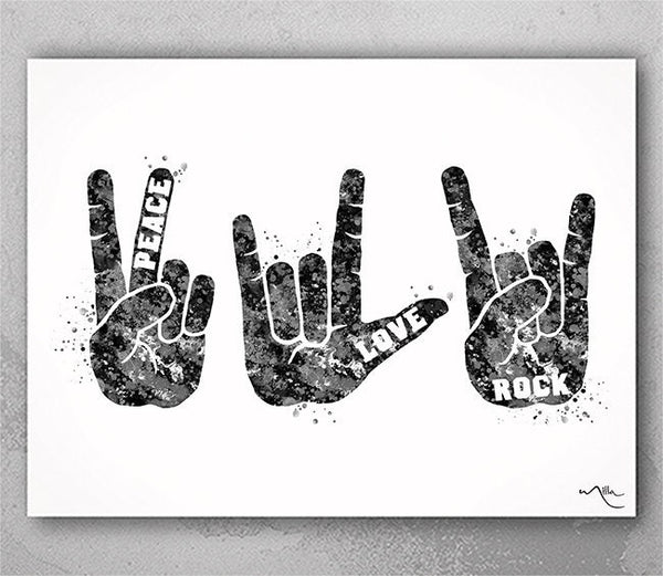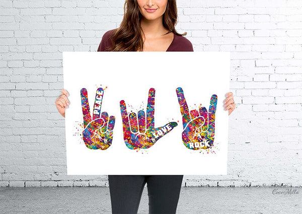 Peace Love Rock Symbol Watercolor Print ASL Sign Language Love Hand Sign Poster Rock Sign Peace Hand Manual Alphabet Teen Room Decor-2342
