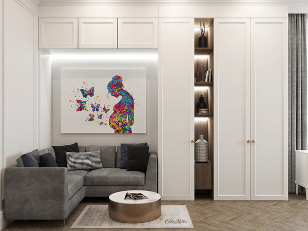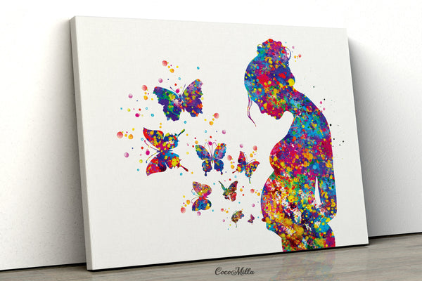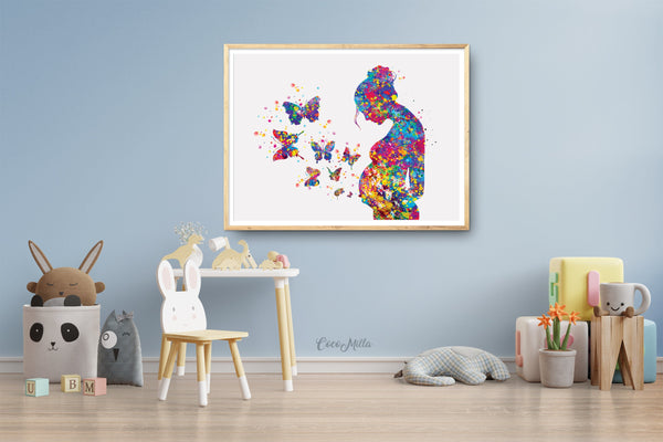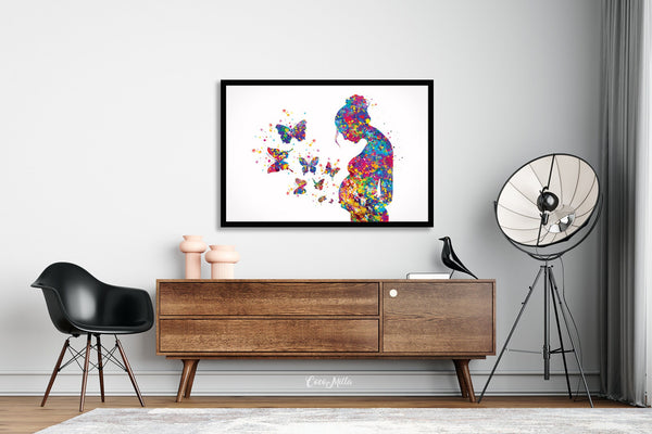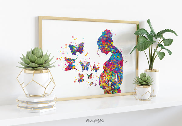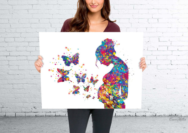Pregnant Woman Butterflies Watercolor Print Pregnancy Gift Butterfly Obstetrician Nursing Baby Shower New Mum Art Clinic Midwife Gift-1215