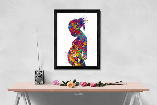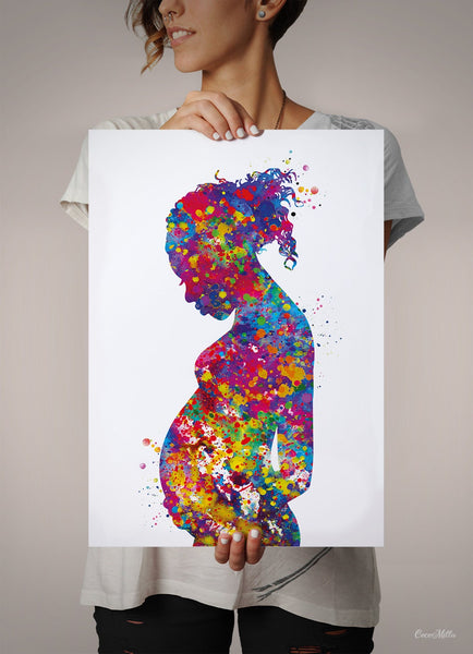 Pregnant Woman Watercolor Print Pregnancy Gift Gynecology Obstetrician Nursing Afro Mom New Mum Medical Office Art Clinic Midwife Gift-2089