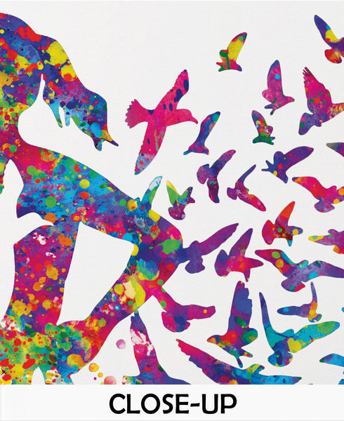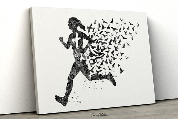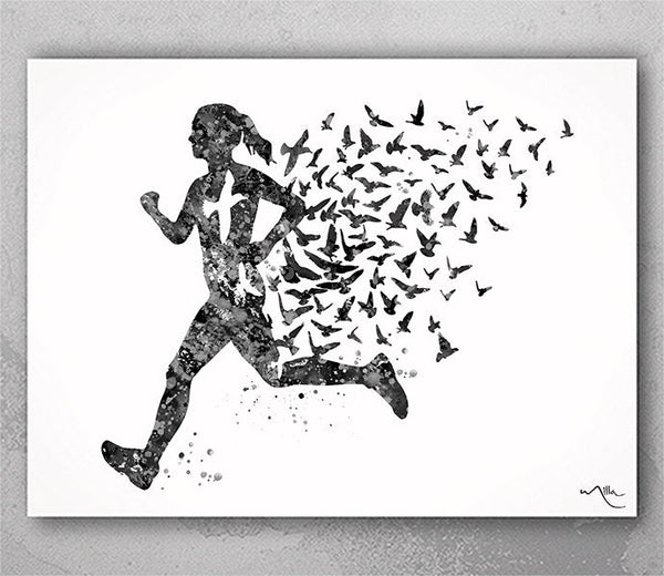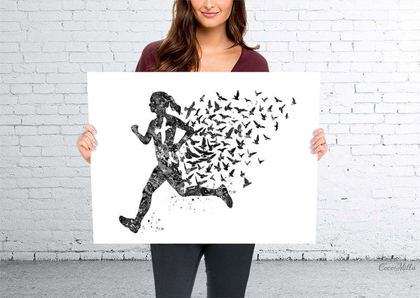 Runner Woman with Birds Watercolor Print Runner Woman Female Girl Marathon Athlete Personalised Gift Poster Sports Running Gift Runners-1500