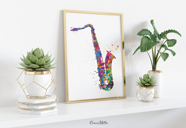 Saxophone Music Instrument Watercolor Print Saxophone Player Music Wall Art Saxophonists Jazz Geekery Nerdy Wall Hanging Music Poster-1132