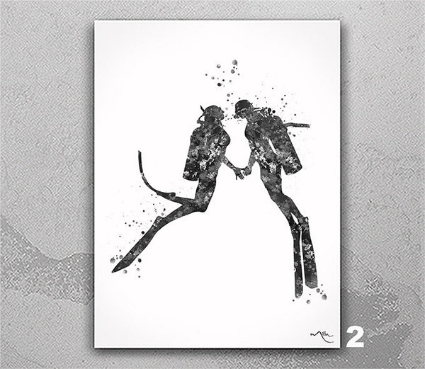 Scuba Diving Couple Watercolor Print Personalised Gift Coastal Wall Art Wall Art Diving Wedding Gift Valentine's Gift Wall Hanging-2631