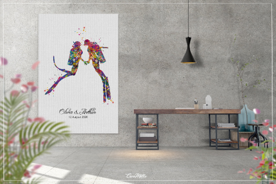 Scuba Diving Couple Watercolor Print Personalised Scuba Diving Couple Print Wall Art Diving Wedding Gift Valentine's Gift Wall Hanging-1392