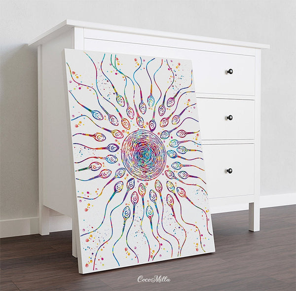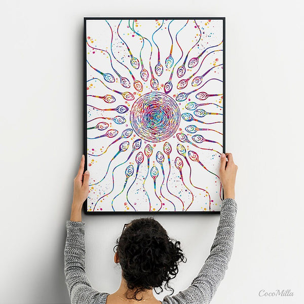Sperms and Egg Art Watercolor Print Uterus Fertility Gynecology Medical Art Medicine Fertilization Baby OBGYN Medical Nurse Midwife-1131
