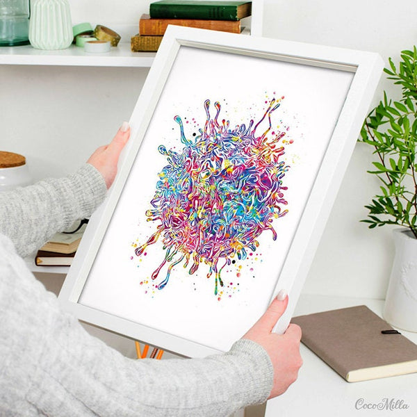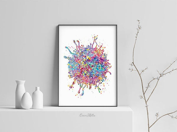T-Cell Watercolor Print Immune Cells Medical Art Science Histology T Cells Biology Art Oncology immunology Clinic Office Cancer Chemo-1472