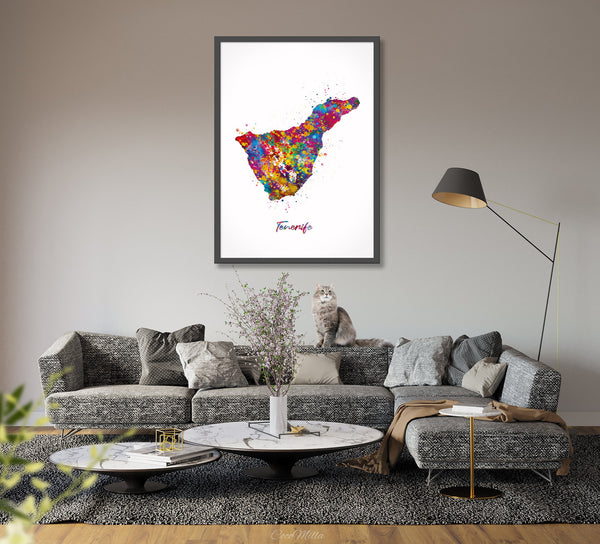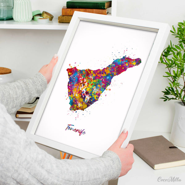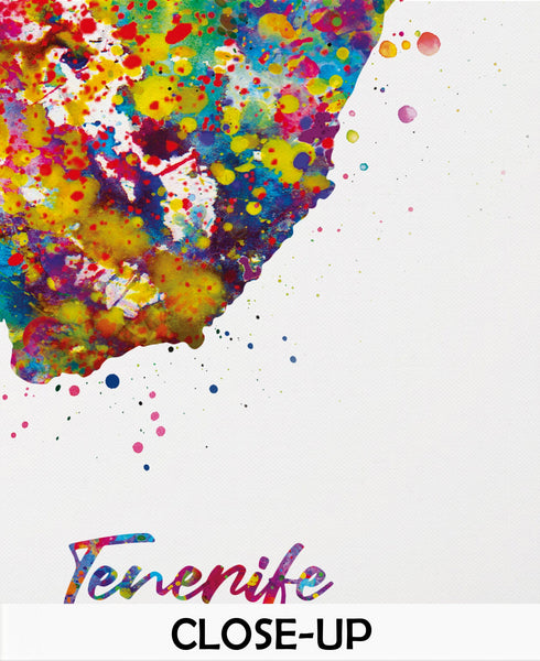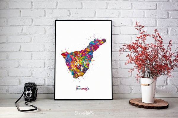 Tenerife Map Watercolor Print Canary Islands Spain Wall Art Wedding Gift Honeymoon Gift Wall Hanging Travel Poster Home Wall Decor-1644