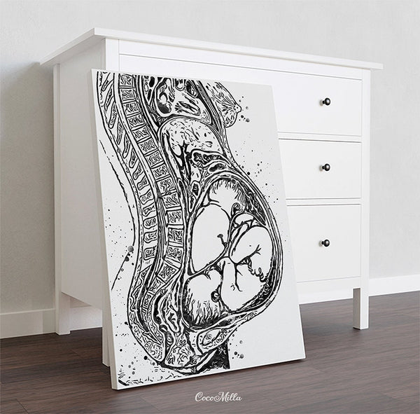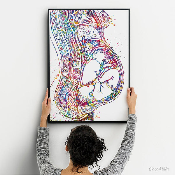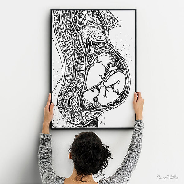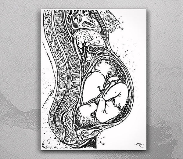 Twin Pregnancy Watercolor Print Womb Pregnancy Anatomy Gynecology Obstetrician Nursing Midwife Baby Fetus Medical Art Clinic Doctor Gift-869